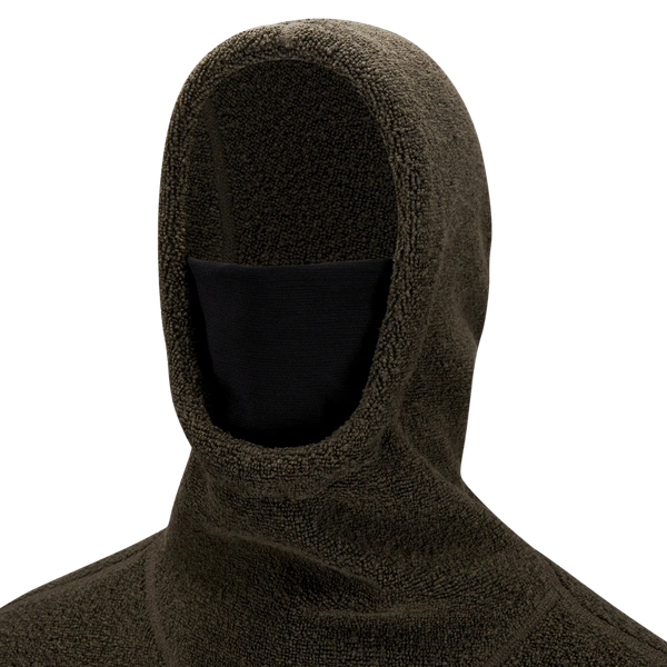 Genseren har en hette med innebygd hals og en romslig passform. Foran er det en stor lomme med glidelås og justeringsmuligheter på sidene. Innsiden består av børstet ull som gir ekstra luft, og gir god isolasjon. Logoen er laget av fiskeskinn. Dette er en myk, slitesterk og svært behagelig genser, ideell for krevende utendørsaktiviteter på vinteren som til hverdagsbruk.